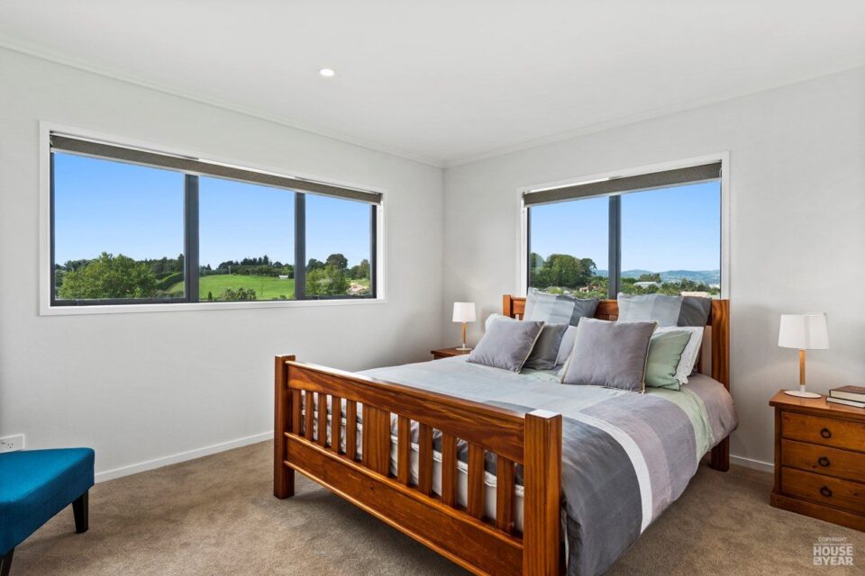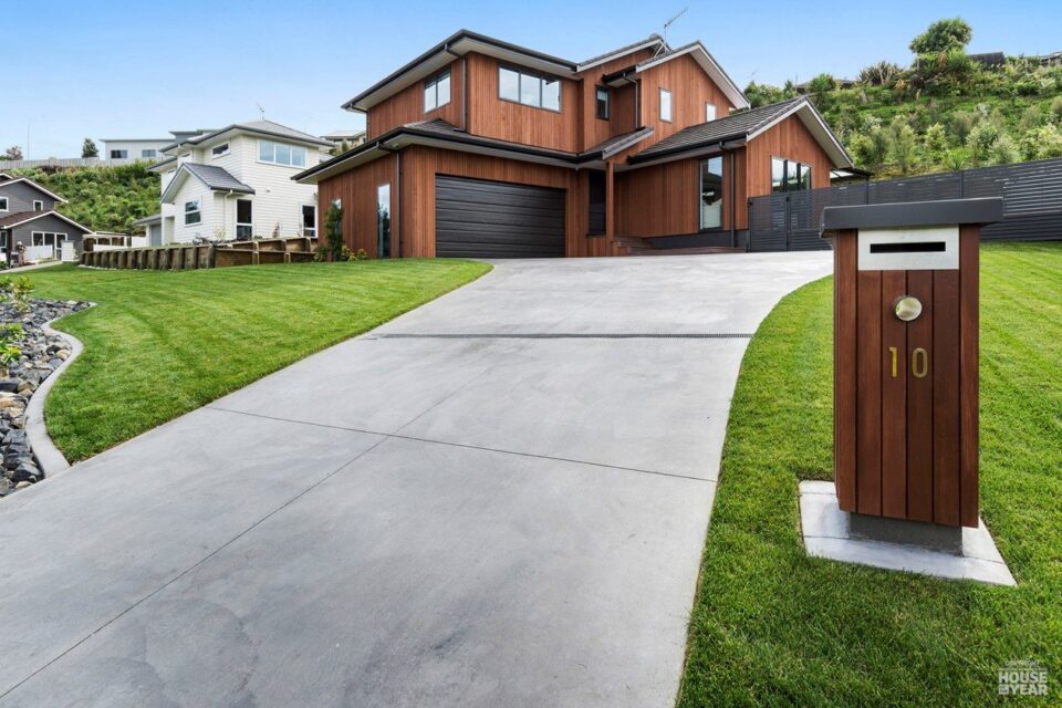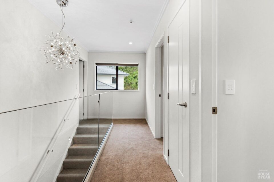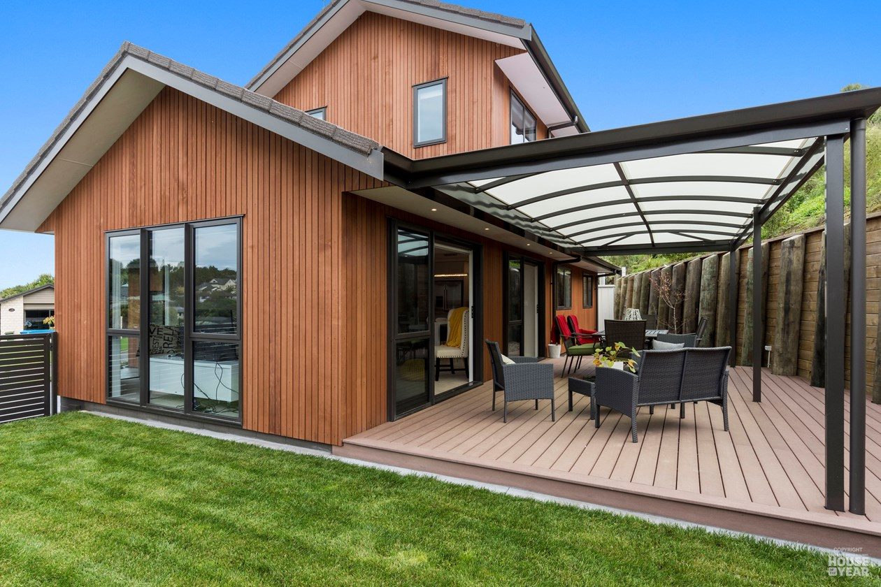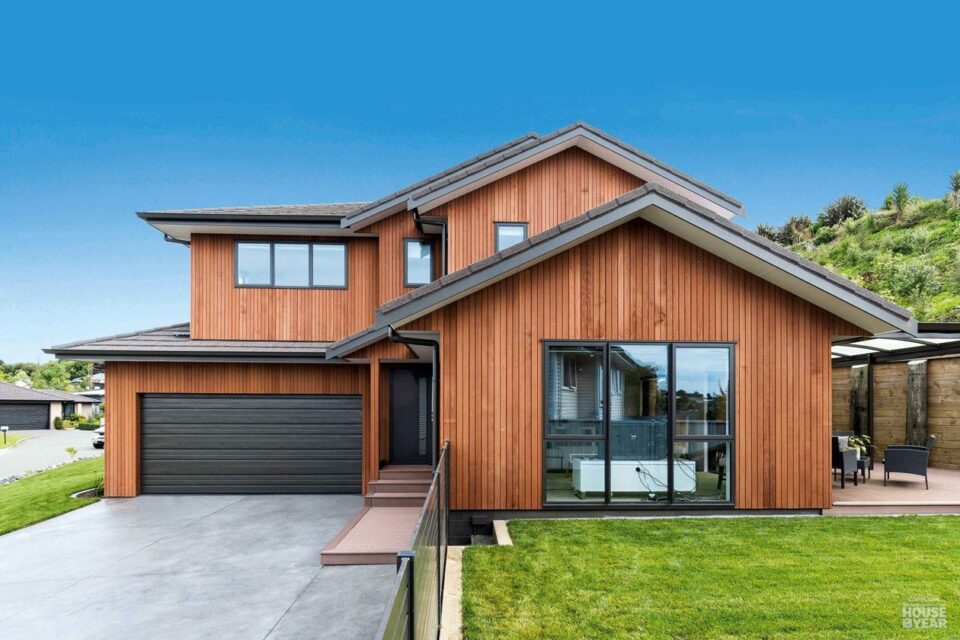 Perched on an elevated site, this cedar-clad residence is a seamless blend of traditional materials and modern comfort. Designed to embrace natural light while ensuring privacy, the home features four bedrooms, three bathrooms, and two inviting living spaces across its two levels.
