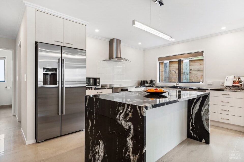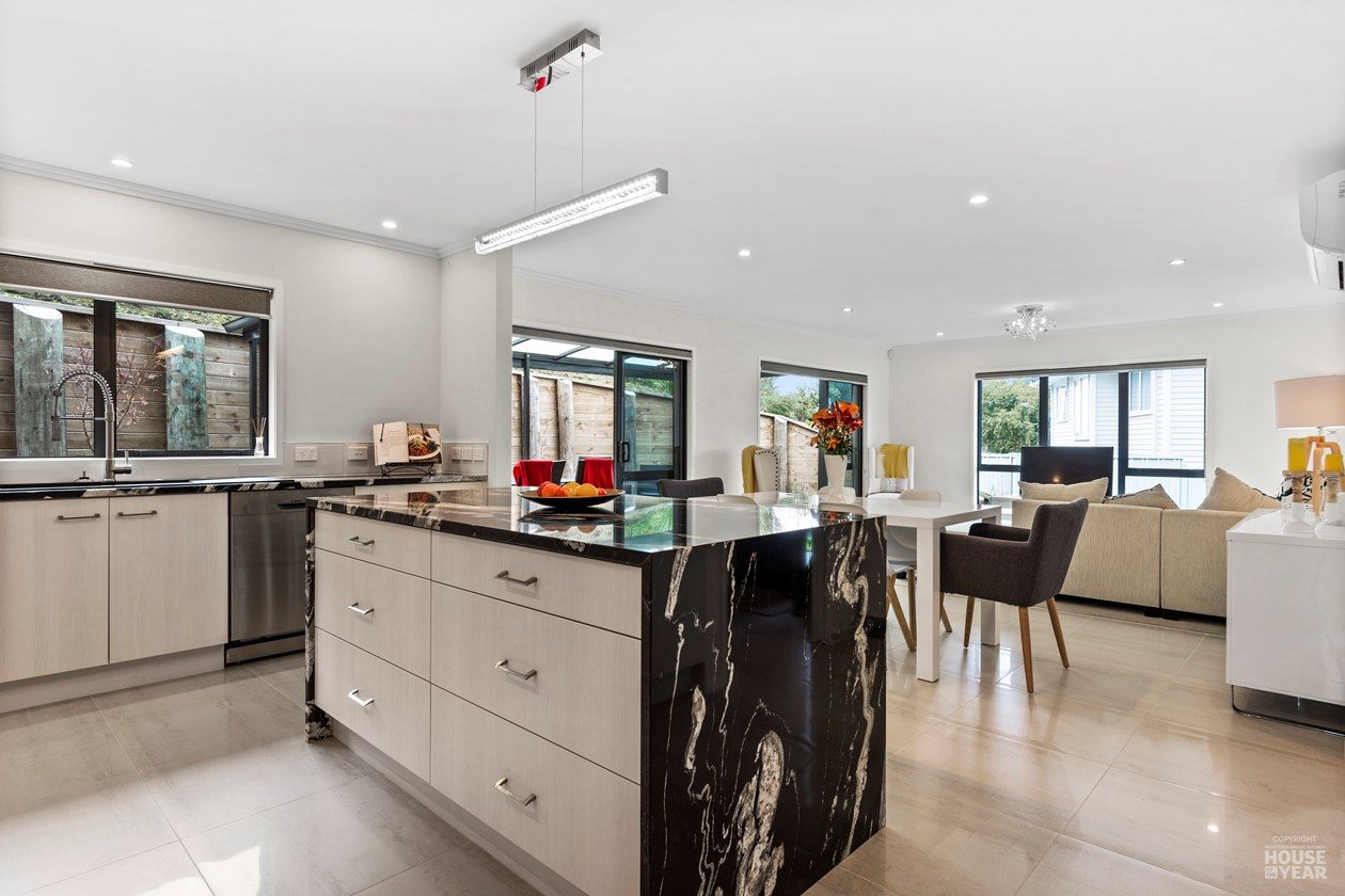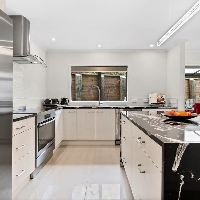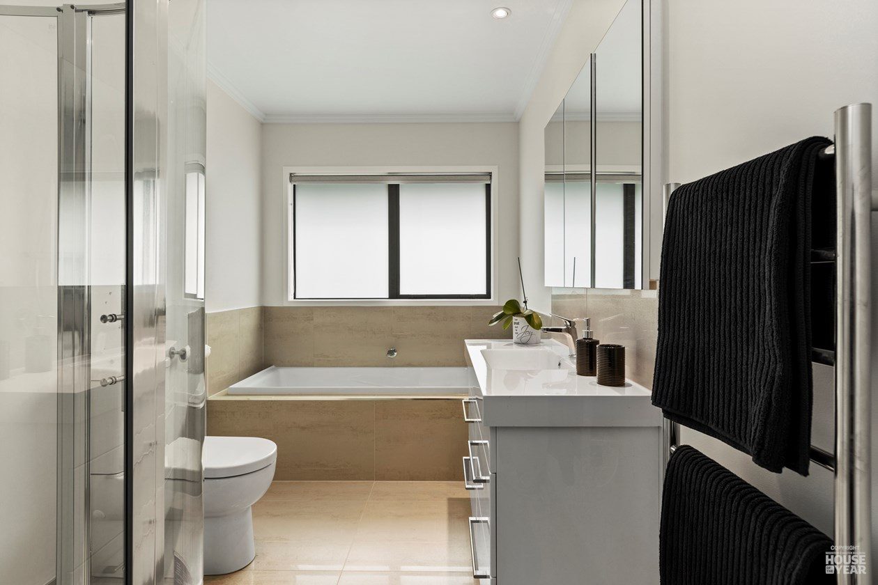 Perched on an elevated site, this cedar-clad residence is a seamless blend of traditional materials and modern comfort. Designed to embrace natural light while ensuring privacy, the home features four bedrooms, three bathrooms, and two inviting living spaces across its two levels.